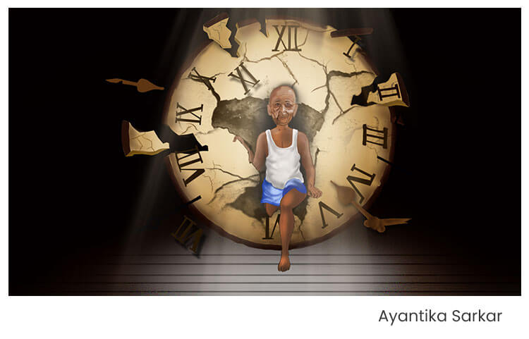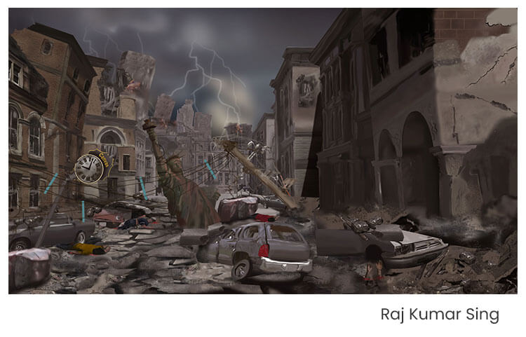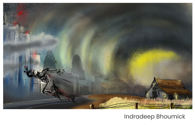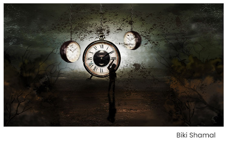 Use your creative thought to make a digital painting based on the following topic “Jokhane, Somoyer Aage, Gati Bhaage (Where Speed moves faster than time)